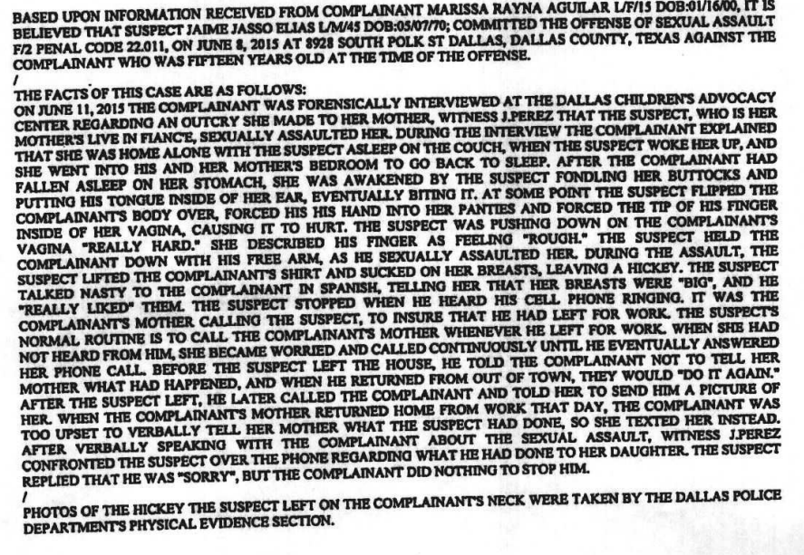 Below we have included an excerpt from the police report detailing the whole incident. Warning: the report is incredibly graphic and disturbing. If you’d like to spare yourself the details, the general summary is that Elias followed his fiancé’s child into a bedroom, waited for her to fall asleep, then repeatedly and violently assaulted and raped her.